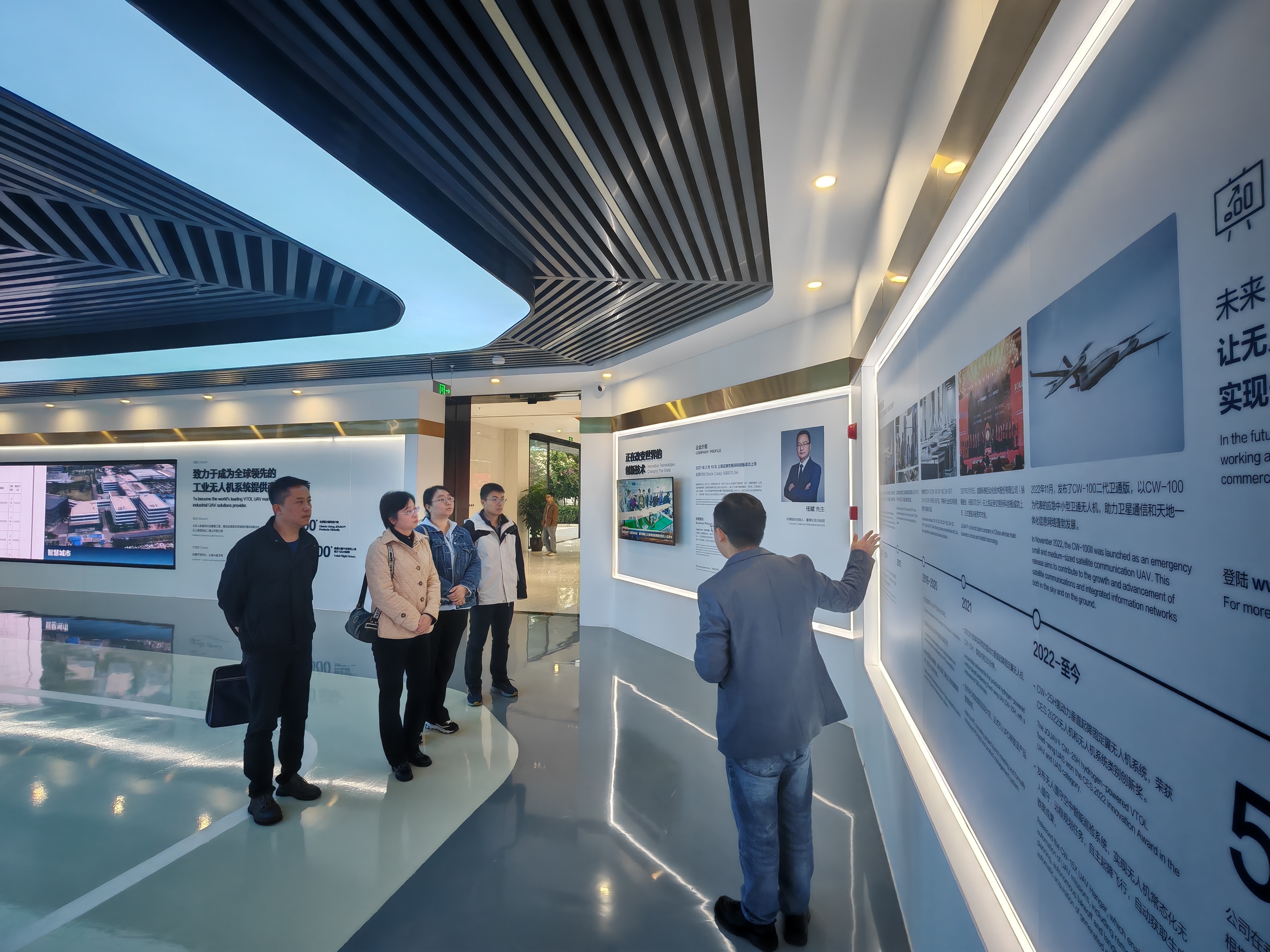 调研团队首先走访了行业领军企业成都纵横自动化技术股份有限公司,参观了企业展厅及生产车间,深入了解其核心产品与技术优势。座谈中,双方围绕工业无人机发展趋势、人才需求以及校企合作模式进行了深入交流。彭裕红介绍了学院在智能制造领域的专业布局,希望与头部企业加强合作,共同探索符合区域发展需求的人才培养路径。