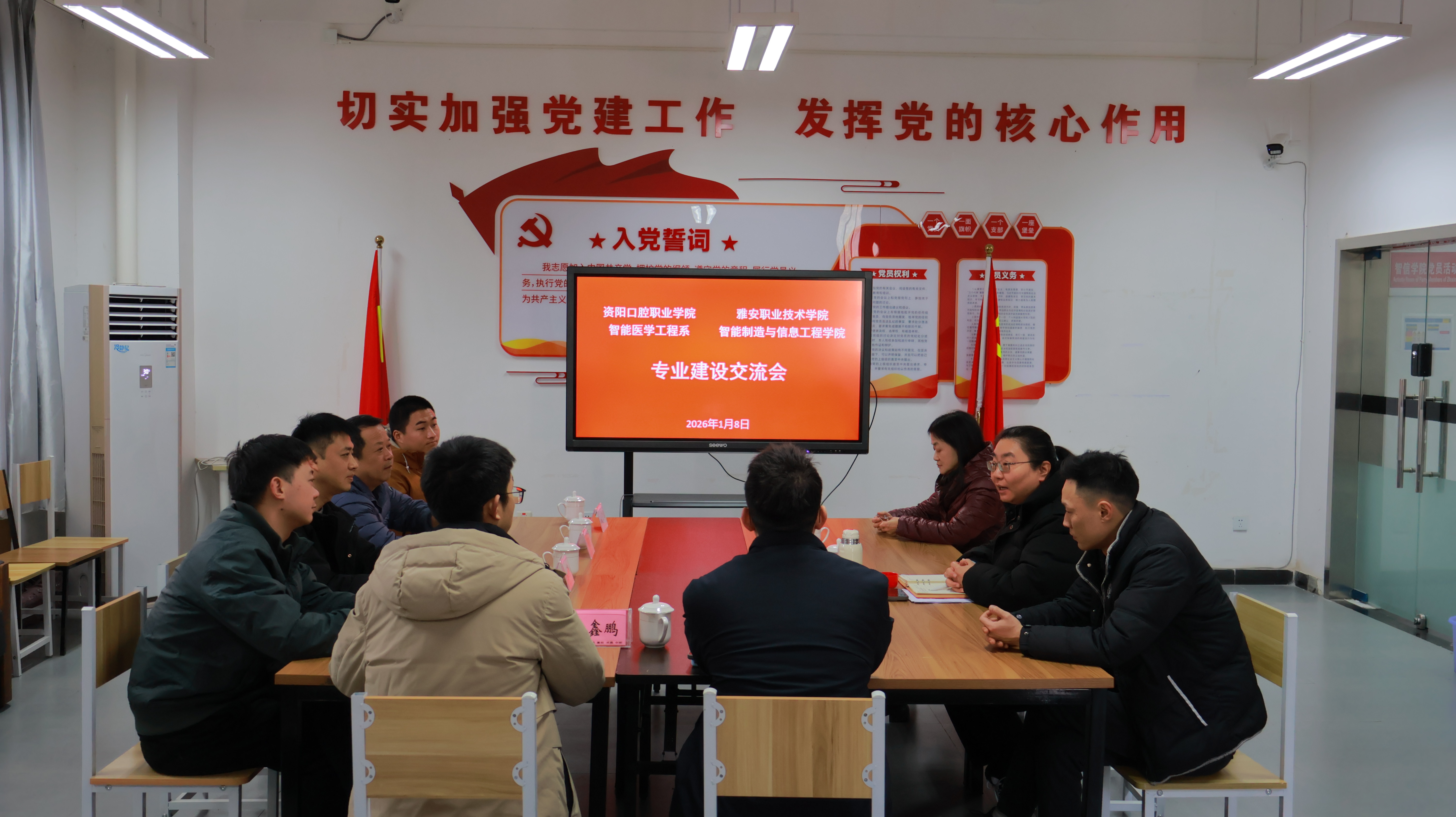 为进一步促进职业院校之间的专业建设交流,1月8日下午,资阳口腔职业学院智能医学工程系张涛主任一行到访我院,围绕智能医疗装备技术专业的建设与发展开展交流。智信学院党总支书记王伟才、副院长宋晓雯、专业教师李燕、艾茂参加交流。