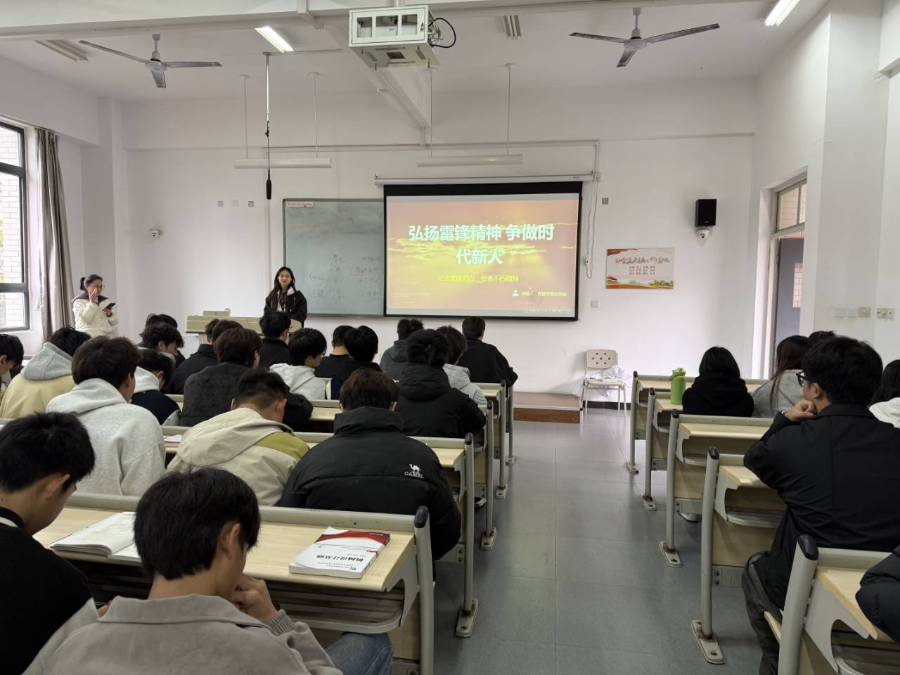 本次班会以“传承雷锋精神,争做时代新人”为主题,通过回顾雷锋同志的生平事迹、诵读《雷锋日记》经典片段,班会生动阐释了雷锋精神的核心内涵,并结合当代青年学习成长与使命担当,深入分析了雷锋精神在新时代背景下的现实意义。在普专大数据技术25-2班班会现场,同学们积极参与交流互动,踊跃分享身边践行雷锋精神的感人故事,围绕如何将“螺丝钉”精神融入专业学习与实践展开深入探讨。部分班级还发起“学雷锋,微承诺”行动,引导学生在点滴承诺中实现精神内化与行为外化。