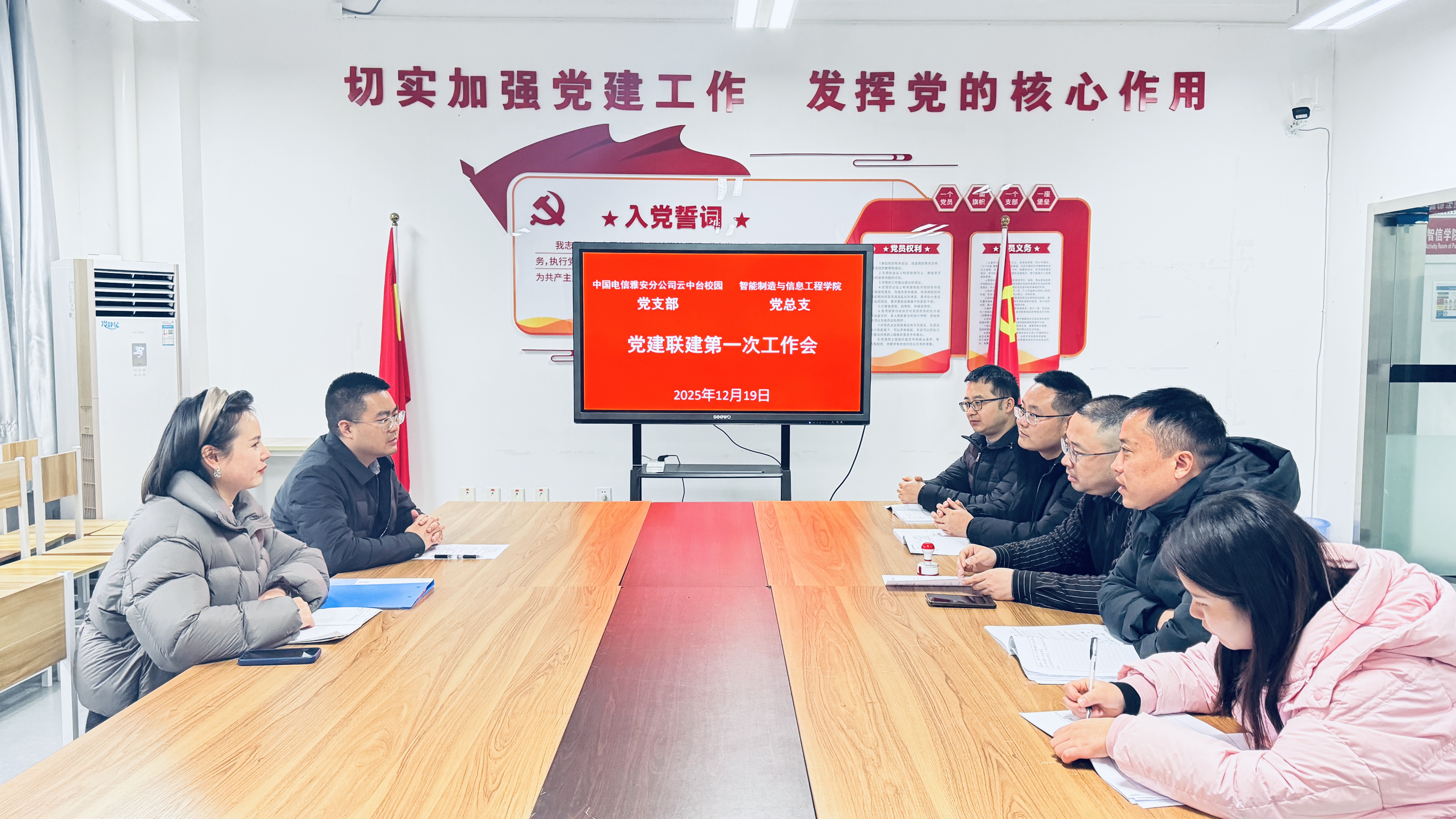 12月19日下午,智能制造与信息工程学院党总支与中国电信雅安分公司云中台校园党支部完成党建联建签约仪式后,随即在信息工程技术楼101党员活动室召开第一次工作会,就党建联建协议落地实施开展研讨与部署。 中国电信雅安分公司云中台校园党支部纪检委员、校园部负责人王迅,智信学院党总支书记王伟才、副书记张正君及两位委员参会,学院院长吕波列席会议。